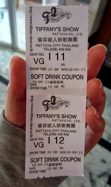 從臺灣出發之前,就先跟民宿訂了Tiffany's Show的秀票。列印好訂票憑證,攜至櫃檯即可。表演分成三種票價,VIP GOLD、VIP、Mezzanine。我們這次買VIP位置,價格是THB600,但是現場買的話,要THB1200(左右),所以強烈建議一定要事先訂票!!
