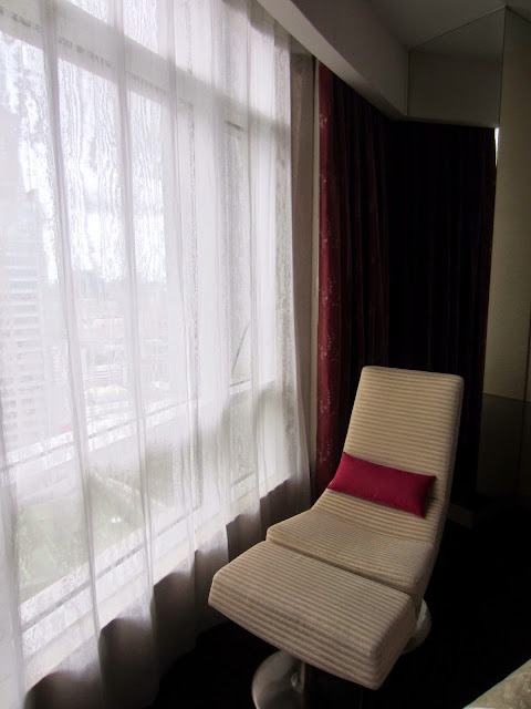 訂飯店之前,曾看過幾篇飯店心得文,其中有人抱怨房間不夠大間,實際住過後,覺得房間的確不大,但是足夠讓我們敞開行李箱,堆三、四袋購物戰利品,還有空間走路。這樣房間大小已經很夠了。