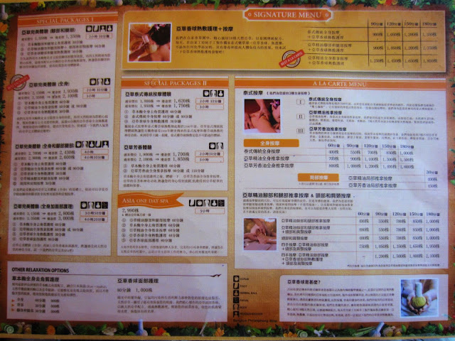 圖有點小,看不清楚可以到官網上查詢,上面有很詳細的資訊,各種按摩的內容,所需時間跟價格都清楚。